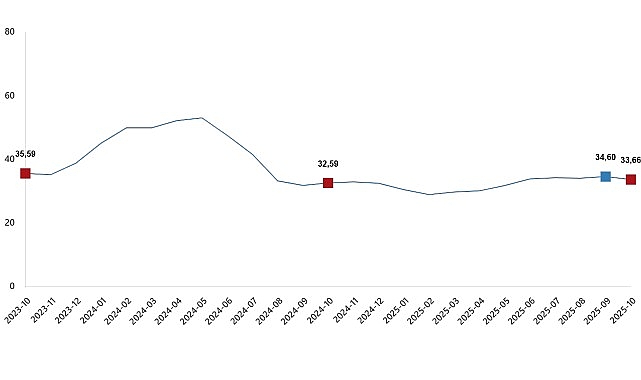 Tarım-GFE'de (2020=100), 2025 yılı Ekim ayında bir önceki aya göre %2,04 artış, bir önceki yılın Aralık ayına göre %29,06 artış, bir önceki yılın aynı ayına göre %33,66 artış ve on iki aylık ortalamalara göre %32,30 artış gerçekleşti.