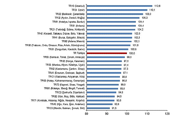 Türkiye'nin 2024 yılı sonuçlarına göre fiyat düzeyi endeksi en yüksek bölgesi 112,6 ile TR10 (İstanbul), en düşük bölgesi ise 91,5 ile TRC3 (Mardin, Batman, Şırnak, Siirt) oldu. Bu endeks değerleri, TR10 (İstanbul)'un Türkiye ortalamasına göre %12,6 pahalı, TRC3 (Mardin, Batman, Şırnak, Siirt)'ün ise %8,5 daha ucuz olduğunu göstermiştir.