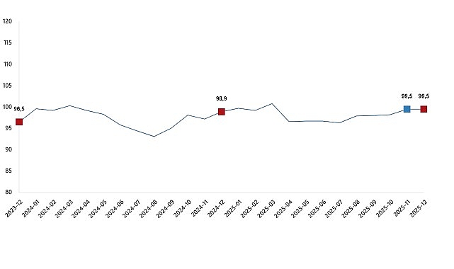 Ekonomik güven endeksi Aralık ayında aynı düzeyde kalarak 99,5 değerini aldı.
