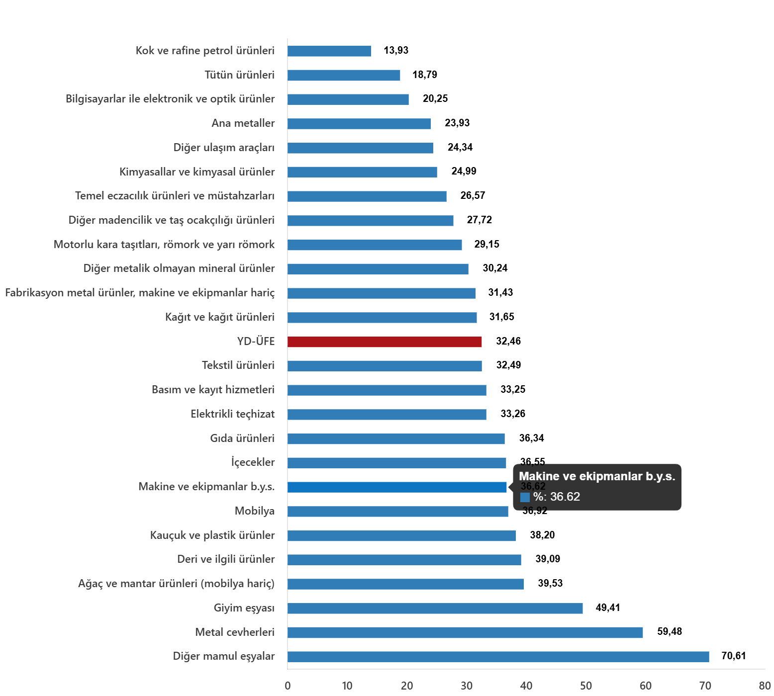 YD-ÜFE imalat ürünlerinde yıllık %32,24 arttı